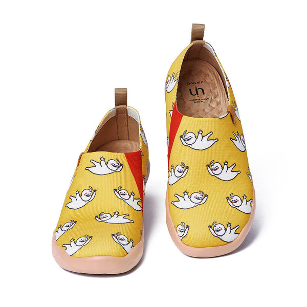 Oh my God! On these shoe covers, it is ACTUALLY raining babies! That¡¯s fantastic! Together with the sky-dropping kids, who white-colored just like angels, it comes also a striking and eye-catching bright yellowing background, perfect for your casual clothes in order to dress up for your everyday life, but with your authentic and unique style!