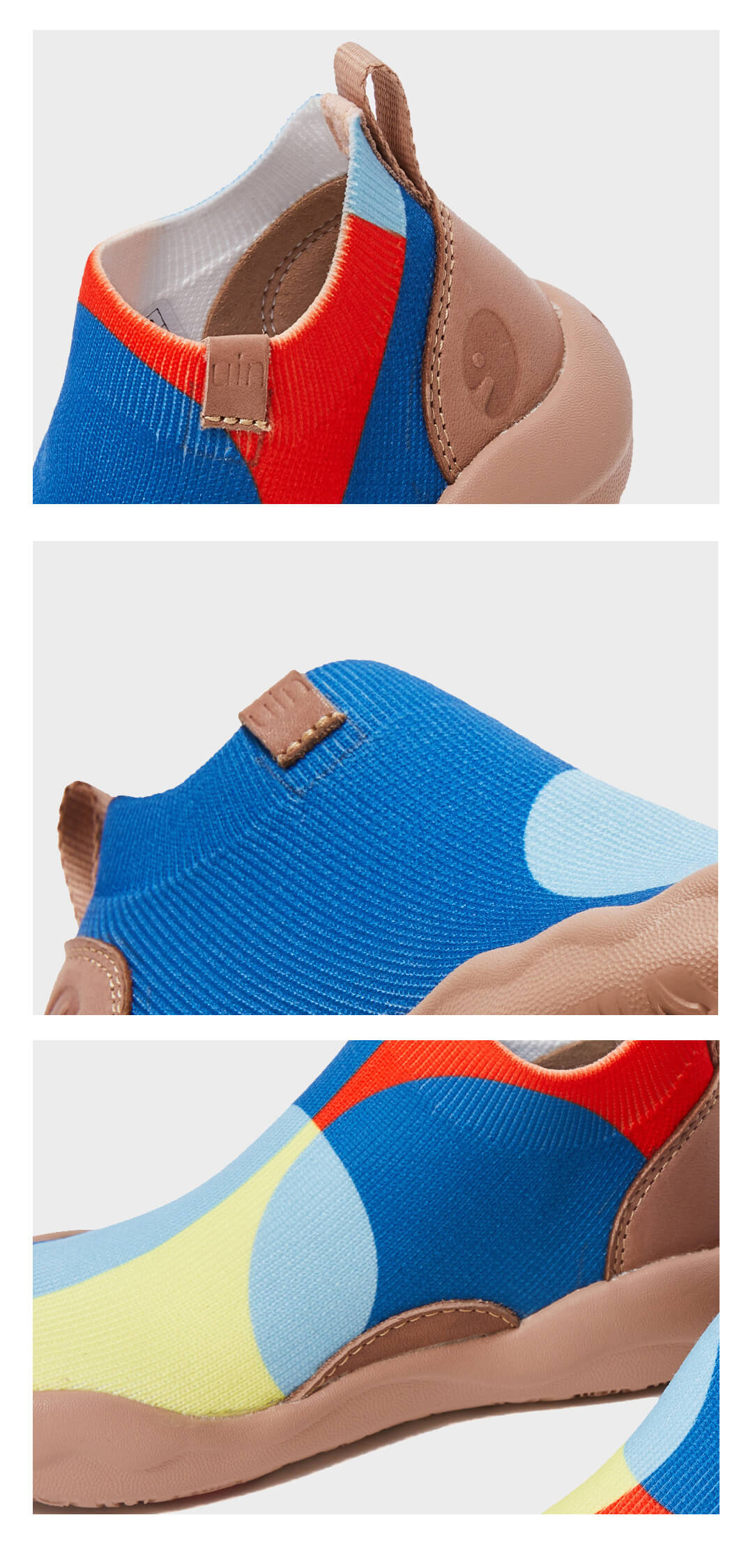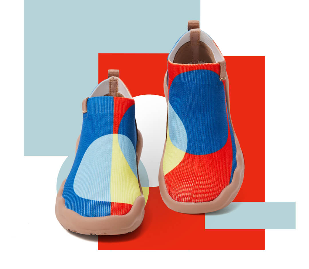 These mesmerizing shapes were initially meant to be moons and astral systems by the designer, but the concept further evolved from that idea in order to encompass more abstract shapes and lines. Now you can choose between 3 different color patterns of the same linear motif: two vertical lines that intersect with a round shape located in the right shoe. Full color spectrum !