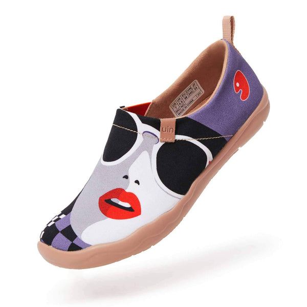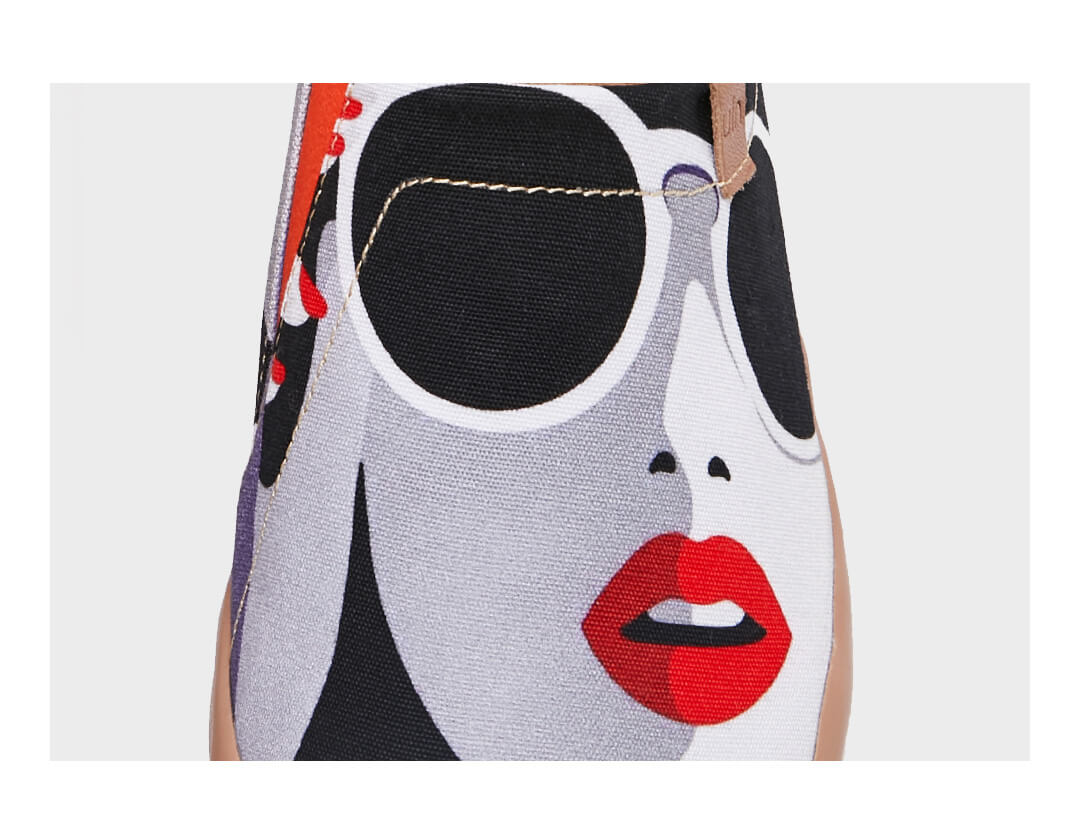 One of the masterpieces from our pop-art collection! This awesome pair of shoes portray an idealized sexy looking modern girl with several different shades of cold colors such as white and gray, with the brightness of the red lipstick that is in appealing contrast with the general sense of urban coldness and detachment. Best way to do an original gift to your girlfriend or yourself.? ??