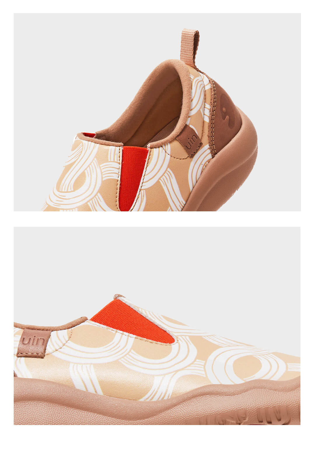 Double elastic band, suitable for high instep. Allows the shoes to be easily taken on or off.