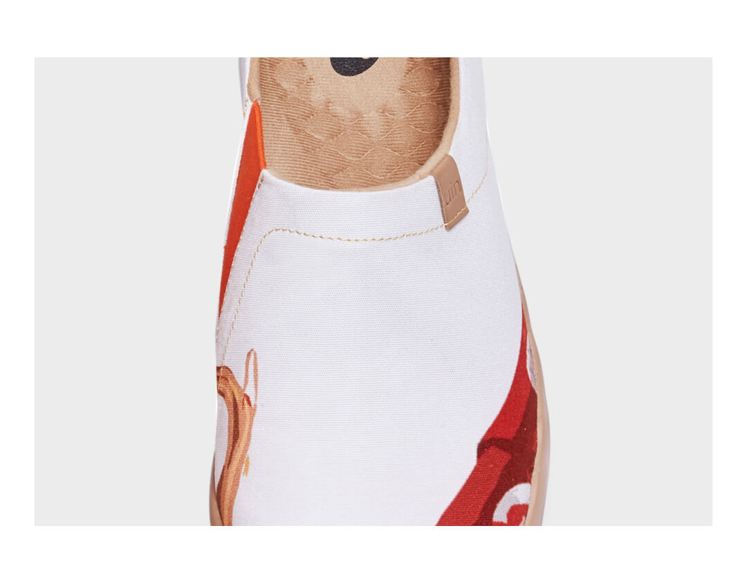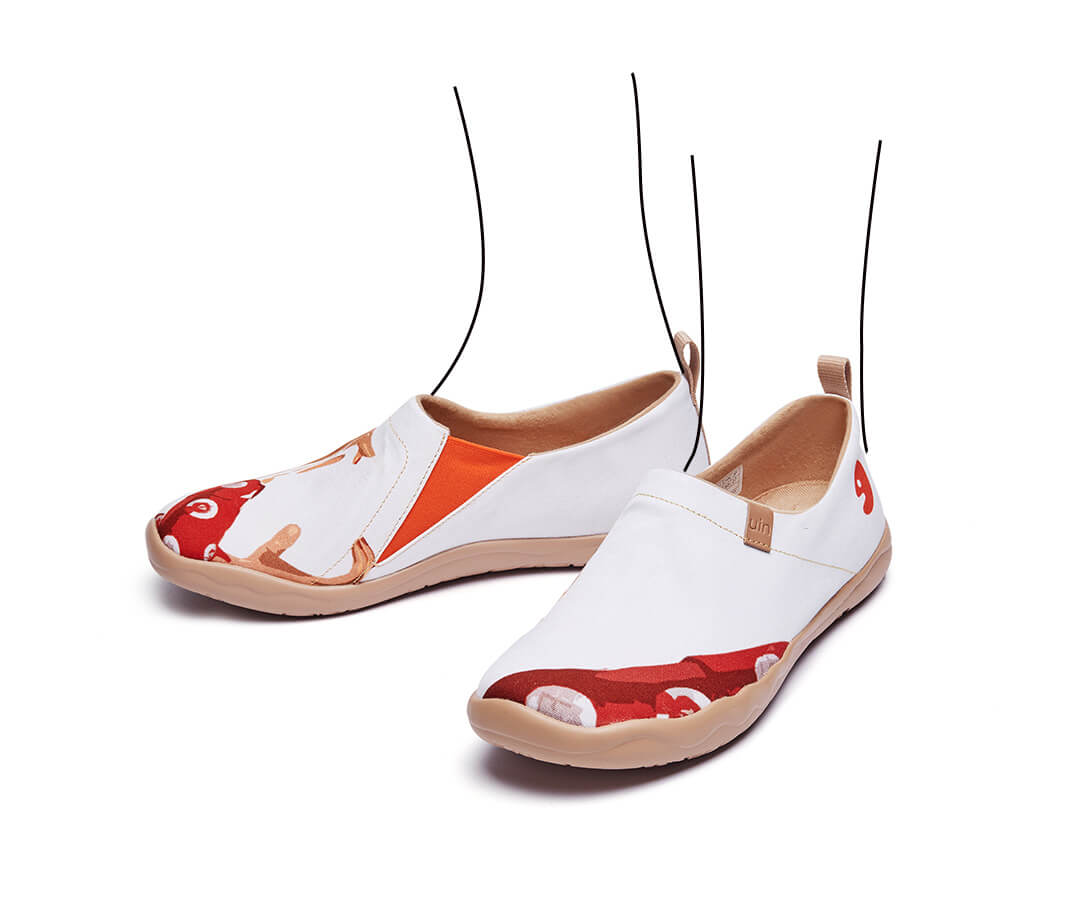 Sway the Silk is a tribute to the magnetizing performances and iconic forms of famous Spanish dance! As flamenco is one of the most intriguing fusions of music and body movements, it delivers a fascinating mixture of positive sensations impossible to find elsewhere. The red design elements underline on the white shoe background will let you dance in the streets!